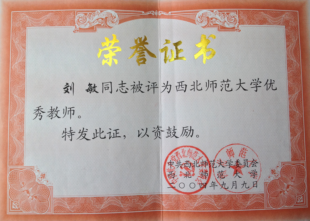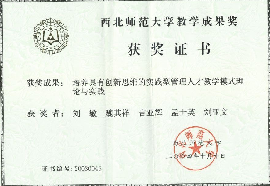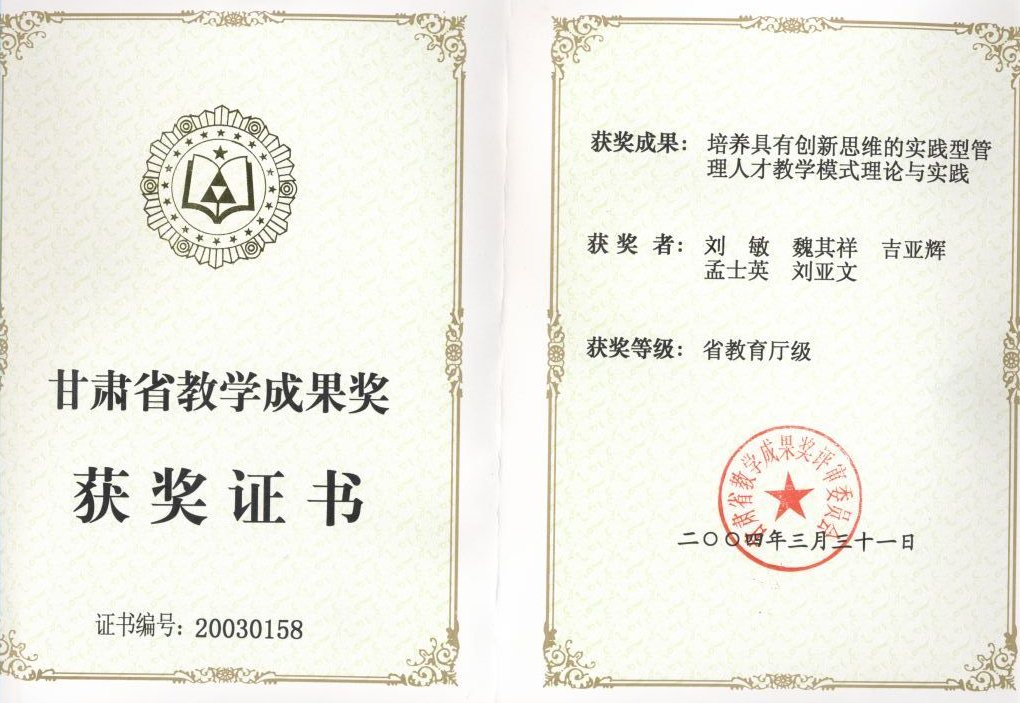 15.2004年,甘肃省优秀教学成果厅级奖.