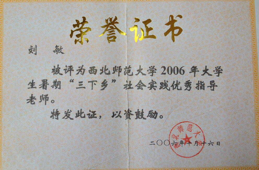 13.2006年,西北师大老员工暑期“三下乡”社会实践优秀指导老师.