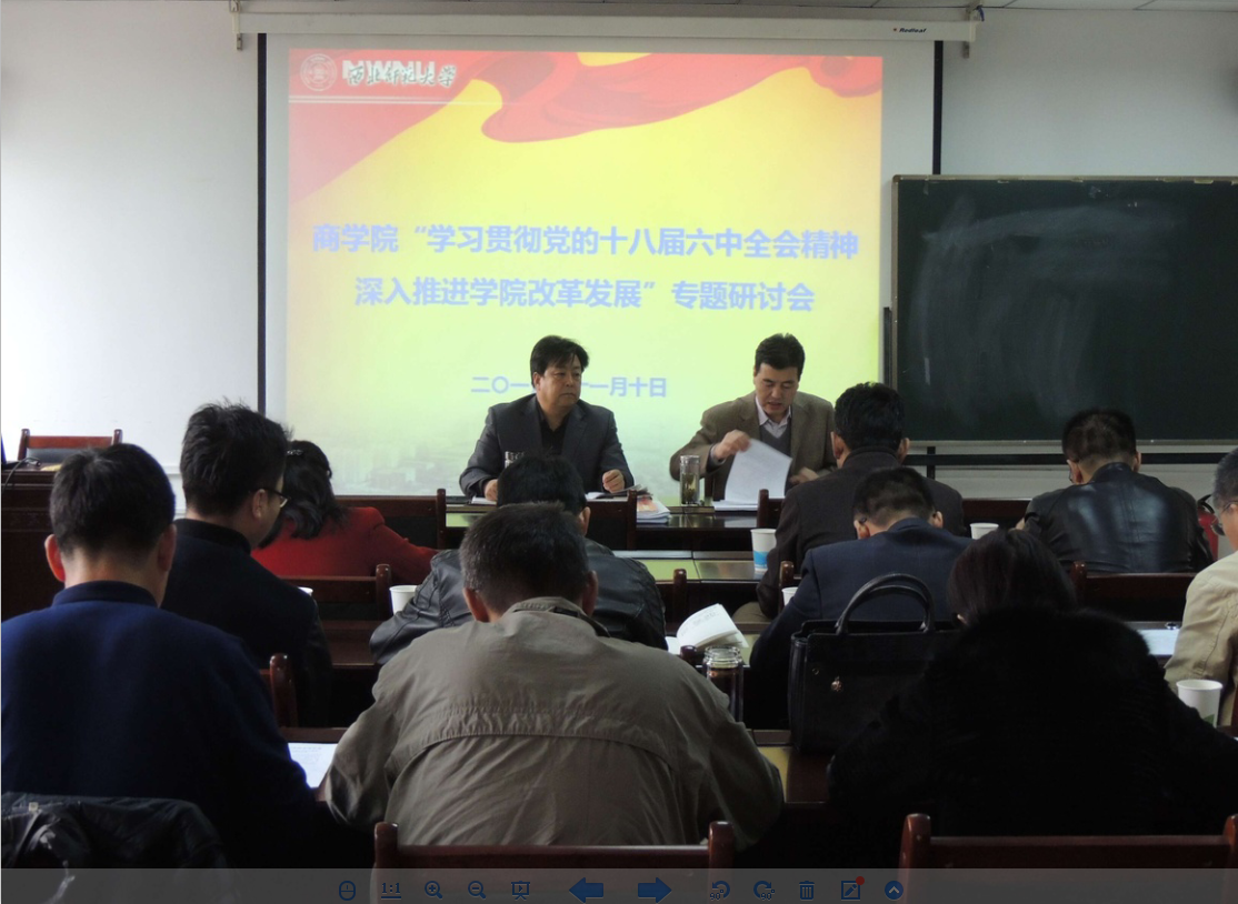 商公司党委于2016年11月10日下午、11日下午和14日上午,组织开展了由公司领导班子成员、党委委员、各党支部书记、公司内设机构负责人、学科带头人、正高级职称教师、获博士学位教师、部分教师为代表的27人参加的“学习贯彻党的十八届六中全会精神,深入推进公司改革发展”专题研讨活动。目的是引导全院职工把思想和行动统一到党的十八届六中全会精神上,把力量凝聚到推动公司的改革发展上,全面落实公司第七次党代会、第六届二次教代会精神和“两学一做”学习教育,进一步凝聚全院发展共识,形成发展合力,推进创新改革,加强内涵发展,提升办学质量。通过此次专题研讨活动,分析研判出公司改革发展面临的机遇和挑战、存在的困难和问题,从而进一步推进公司改革发展的新思路、新举措和新方法。