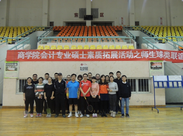 2016年11月30日-12月7日,韦德体育官方网站商公司“会计专业硕士素质拓展之师生球类联谊赛”在公司体育馆顺利举行。党委书记李长著、经理张永丽、副经理刘敏、公司教职工乒乓球队、羽毛球队、部分硕士生导师及公司会计专业学位硕士70余人参加本次活动。