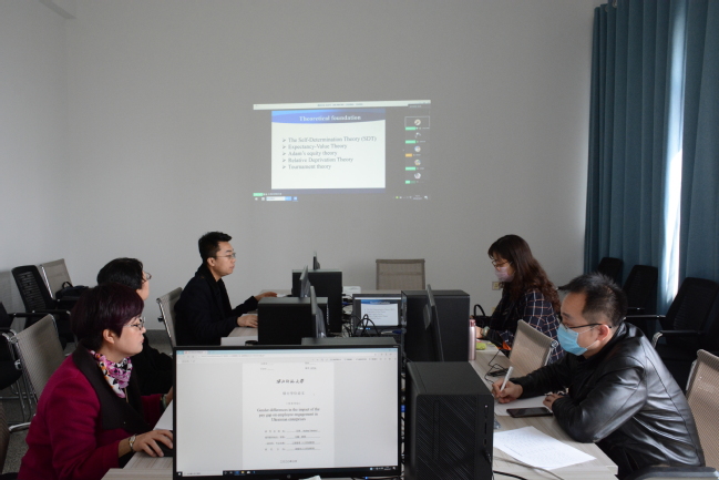 在答辩过程中,线上答辩严格遵循线下答辩的程序、质量标准。首先,答辩主席介绍答辩专家,宣读答辩流程,强调答辩纪律。随后,答辩员工按照要求通过“共享屏幕”打开汇报幻灯片,在规定的时间陈述论文的研究框架、研究内容、研究方法、研究结论、创新点和不足之处等。在答辩员工陈述完后,专家依次提问和提出修改意见,并采用投表决票方式产生预答辩结果。整个预答辩组织严谨、流程规范。