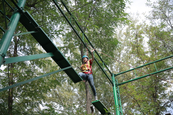 在接下来的各项实训活动中,MBA学员们首先完成了“汉诺塔密码”游戏,在活动的过程中,学员们发现流程设计和执行力配合的重要性;在高空断桥项目上,学员们克服了种种障碍,勇敢的迈出了新的一步;在众人颠球项目中,每位学员为了同一个目标,全神贯注,服从统一安排、统一指挥,配合完成项目;在最令人难忘的毕业墙项目中,大家分工协作、不计得失、积极奉献,有些学员无怨无悔甘为人梯,有些学员迎难而上攀爬新高,有些学员鼓足干劲帮助一位又一位学员成功跨越高墙,大家团结一致、齐心协力,最终在规定的时间里完成了越过障碍的团队目标。在大家的努力拼搏和欢呼喜悦中,此次素质拓展实训活动最终得以圆满完成。