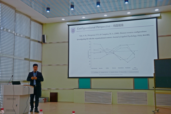 会议开始后,依次由来自广东财经大学、上海财经大学、南京大学、南开大学、南京审计大学、西南财经大学的六位专家进行了学术讲座:吴坤津副教授做了题为《家长式人力资源管理的内涵及影响机制探讨》的讲座,阐述了家长式人力资源管理研究的文化根源与影响机制;蔡亚华副教授做了题为《Polynomial regression with response surface analysis》的讲座,详细论述了多项式回归方法原理与统计分析技术;席猛研究员做了题为《战略人力资源管理研究:过去、现在和未来》的讲座,回顾了战略人力资源管理的脉络与核心问题,提出了许多新思路新方向;林伟鹏副教授做了题为《多水平建模:理论、测量与分析》的讲座,主要介绍了多水平建模理论基础、测量问题和分析方法;杨静副教授做了题为《企业生态创新的前因后果研究》的讲座,分享了从实践到文献的研究思路,讲解了环境领导力的影响;徐姗副教授做了《元分析方法及其应用》的讲座,完整讲述了经典元分析方法的原理和实施步骤。最后,周文杰副经理、徐姗老师、吴坤津老师、杨静老师、席猛老师等参加了18日下午的学术研讨,黄勇老师和与和苏超老师分别分享了有关上下级关系元分析及环保型领导力的最新研究论文。