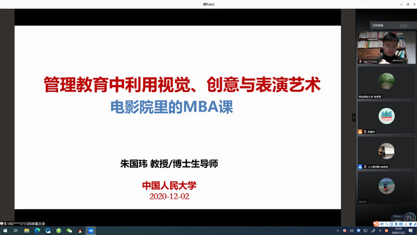 2020年12月2日12:30-13:30,公司案例中心组织教师线上参加由人大商公司组织的管理案例与教学创新工作坊(No.57)。此次学术报告由湖南大学工商韦德体育朱国玮教授讲授题为《管理教育中利用视觉、创意与表演艺术:电影院里的MBA课”》。