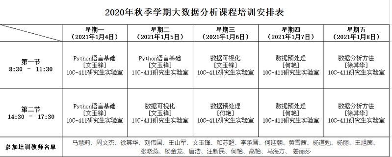 为了顺应“新商科”教学科研需要,以大数据管理与应用专业建设为契机,同时也为提高公司教师大数据分析应用水平,公司于2021年7月14-18日在教学10号楼C411举办了为期五天教师大数据团队培训,公司22名青年骨干教师和部分研究生参加了此次培训。