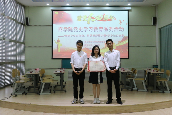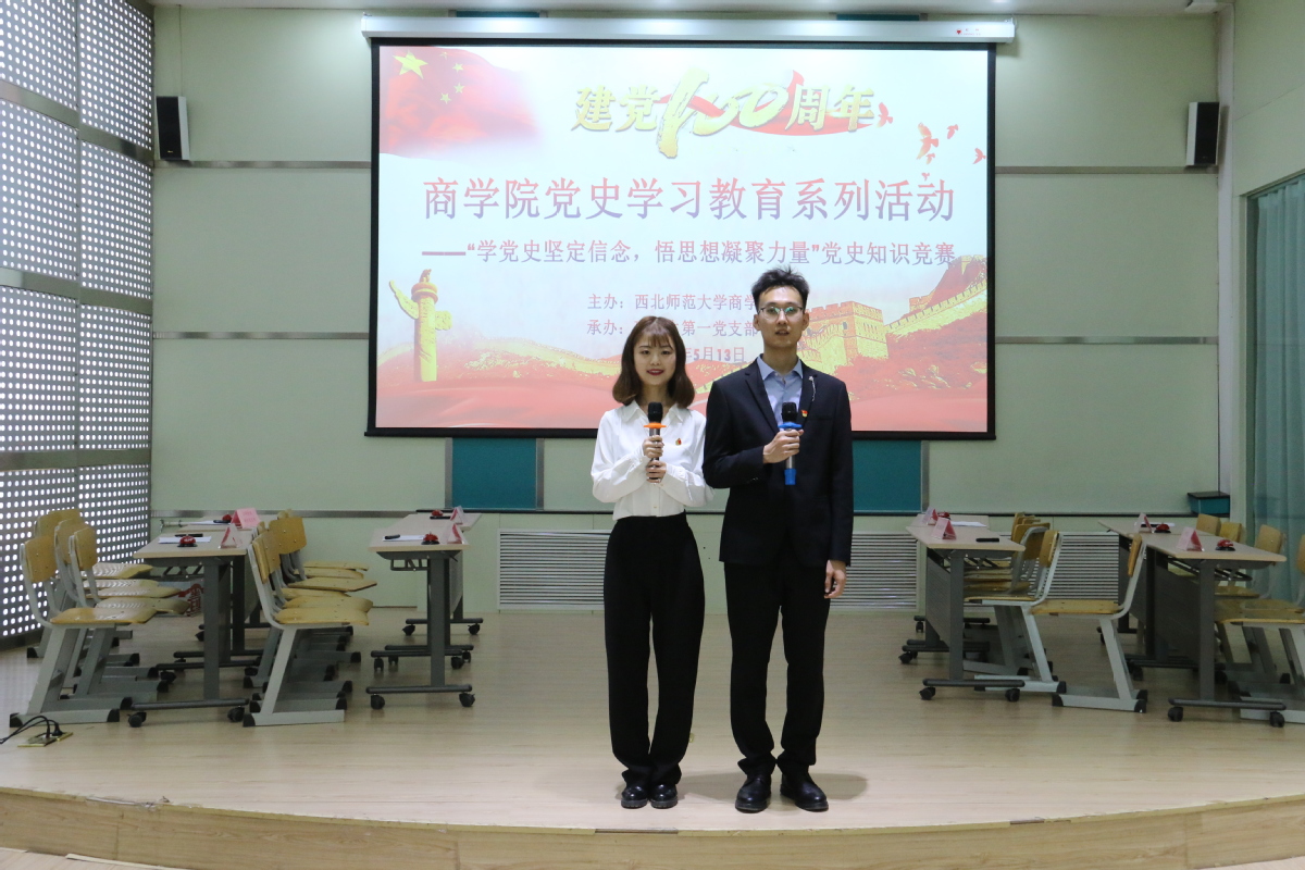 5月13日下午,商公司党委举办了党史学习教育系列活动之“学党史坚定信念,悟思想凝聚力量”党史知识竞赛决赛。本次竞赛由研究生第一党支部承办,各党支部在初赛的基础上,选派3名党员组成支部代表队参加决赛,共有8支代表队参加比赛。商公司党委委员、各党支部书记及全体师生党员到场观摩。