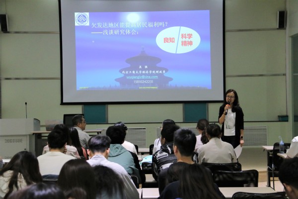 2021年6月17日下午,应韦德体育官方网站商公司邀请,北京工商大学经济公司教授、财政系主任、财政学科和区域经济学科负责人,硕士生导师吴强,在教学楼10号C区7楼报告厅作了题为《欠发达地区能提高居民福利吗?—浅谈研究体会:良知与科学态度》的专题报告。报告会由副经理马慧莉主持,公司领导、辅导员、2018级本科生及部分经济公司本科生参加报告会。