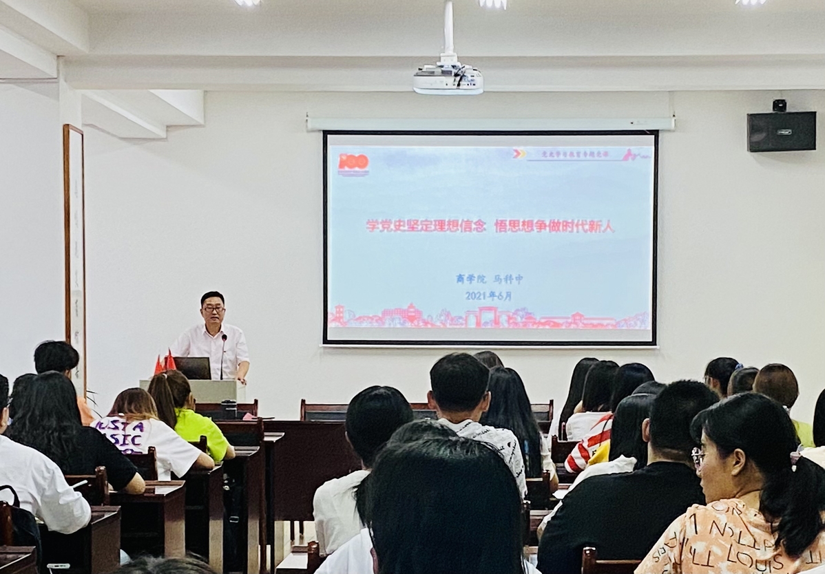 根据公司党史学习教育工作安排,6月21日,公司党委书记马科中在教学10号楼C区208会议室讲授了题为《学党史坚定理想信念 悟思想争做时代新人》的党史学习教育专题党课。研究生第一党支部全体党员、商公司第13期入党积极分子聆听了党课。