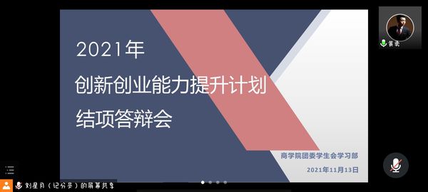 11月13日晚,商公司2021年老员工“创新创业能力提升计划”结项答辩会在线上举办。公司黄勇老师、李承晋老师、史煜娟老师、马兰老师等到会指导并担任评委,公司师生共计100余人参加。