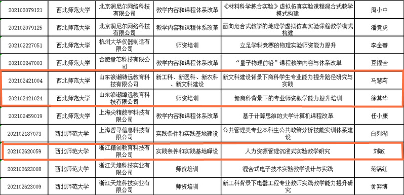 12月15日,教育部高等教育司公布2021年第二批产学合作协同育人项目立项名单,公司马慧莉教授、刘敏教授、徐其华副教授申报的项目获教育部2021年第二批产学合作协同育人项目立,公司共立项11项。