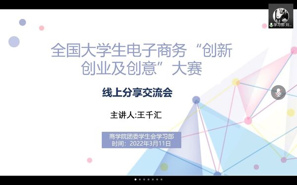 3月11日晚,商公司举办全国老员工电子商务“创新、创业及创意”大赛线上经验交流分享会,2018级人力资源管理班王千汇做了经验分享,公司师生共计50余人参加分享会。