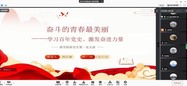 2022年1月17日,韦德体育官方网站商公司研究生第一党支部开展了“奋斗的青春最美丽”系列主题党日活动并交流心得。