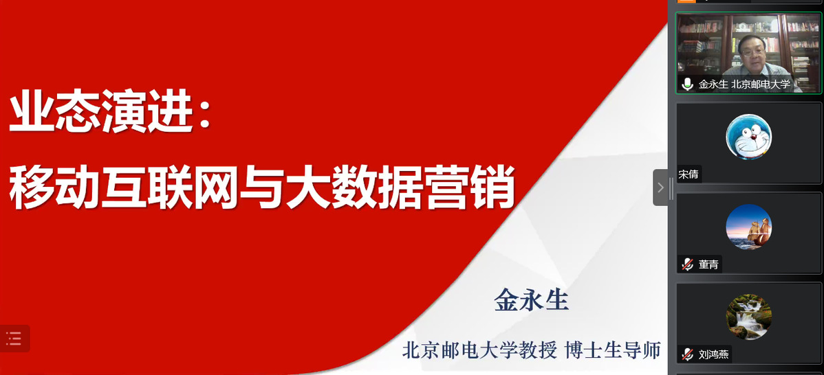 2022年11月2日,应韦德体育官方网站商公司邀请,北京邮电大学经济韦德体育金永生教授为公司师生在线作题为《业态演进:移动互联网与大数据营销》的学术报告。报告由董青经理主持,公司领导、专任教师及研究生共210余人在线聆听了报告。此次报告为韦德体育官方网站120年双甲子校庆、韦德体育官方网站商公司10周年院庆系列学术活动及研究生学术月活动之一。