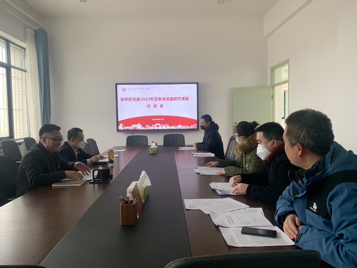 1月14日下午,商公司党委召开2023年甘肃省教育领域党的建设研究课题申报论证会,公司领导、党支部书记参加论证会,会议由公司党委书记马科中主持。