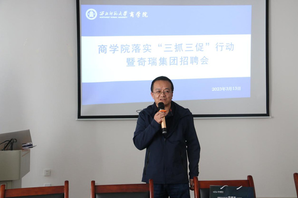 3月13日下午,奇瑞汽车股份有限公司来公司开展专场招聘会,奇瑞国际品牌传播部总监宣舟受邀进行了现场宣讲,为员工现场推荐岗位、答疑解惑。活动由商公司党委副书记杨国科主持,公司师生共计60余人参会。