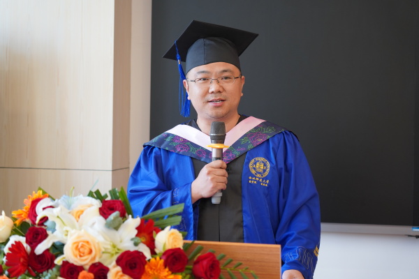 毕业生代表戴维斌对公司的培养表示感谢,疫情三年的求员工涯尽管有遗憾但也收获满满,不虚此行,师生彼此间陪伴如生命中的一道光让求员工涯多姿多彩,期待未来和同学们一道赓续西北师大的优良传统,满怀赤诚、无畏无惧地踏上新的人生旅程;教师代表张学鹏教授祝贺毕业生们顺利毕业并取得工商管理硕士学位,感谢与大家一起度过人生中最美的一段时光,他期望大家把握挑战与机遇,脱颖而出,成为商业精英、成就梦想,回馈社会,并常回母校感受曾经吹过的风走过的路; 员工代表吕兴邦向学弟学妹们表示祝贺,向老师们表示感谢,希望与大家一起携手共铸辉煌;首届员工会会长尚宏利欢迎大家积极加入员工会,继续传承西北师大MBA的优秀基因,助力各界员工在各自岗位有所成就。