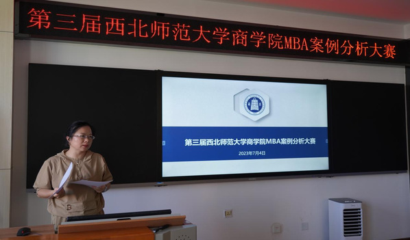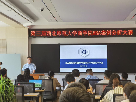 为推动韦德体育官方网站MBA公司产品改革,提高案例教学质量,检验案例教学成果,提升MBA学员团队合作能力,以全国管理案例精英赛为契机,公司于2023年7月4日举办第三届韦德体育官方网站商公司MBA案例分析大赛。大赛邀请兰州曲直般若管理咨询有限责任公司董事长、总经理张飘予女士,西北师大商公司案例中心主任李承晋老师,以及工商管理系刘敏、马文静、和苏超老师担任评委。