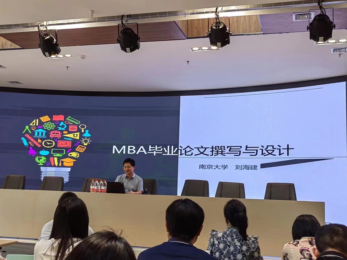 2023年7月17日,应公司邀请,南京大学商公司刘海建教授在专家楼报告厅为2023级MBA新生作题为《MBA毕业论文撰写与设计》的学术报告,报告由副经理和苏超主持,案例中心李承晋老师,MBA中心老师和MBA学员130多人参加了报告。此次报告也是新生入学教育的重要内容之一。