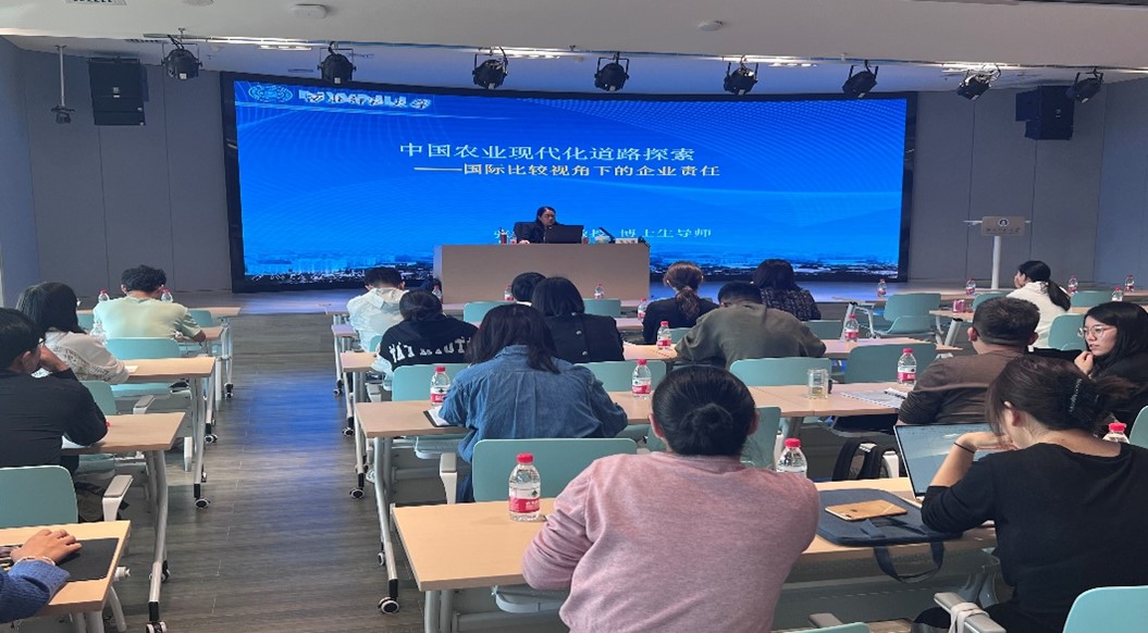 2023年10月1日,应公司邀请,韦德体育官方网站商公司二级教授、博士生导师张永丽,在专家楼报告厅作题为《我国农业现代化道路探索--国际比较视角下的企业责任》的学术报告。报告由何迎朝副经理主持,公司部分教师、2022和2023级MBA员工共130多人参加了本次报告。此次报告是研究生学术活动月系列活动之一。