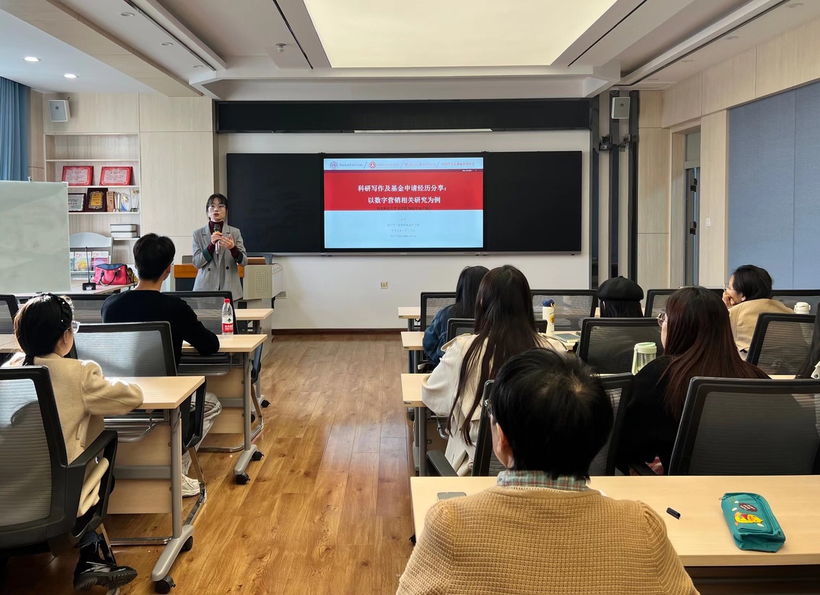 2023年10月20日,应韦德体育官方网站商公司邀请,南开大学商公司市场营销系助理教授刘欢为公司师生作题为《科研写作及基金申请经历分享:以数字营销相关研究为例》的学术报告。报告由薄慧敏老师主持,公司领导、专任教师及研究生共80余人参加了讲座。此次报告是研究生学术活动月系列活动之一。