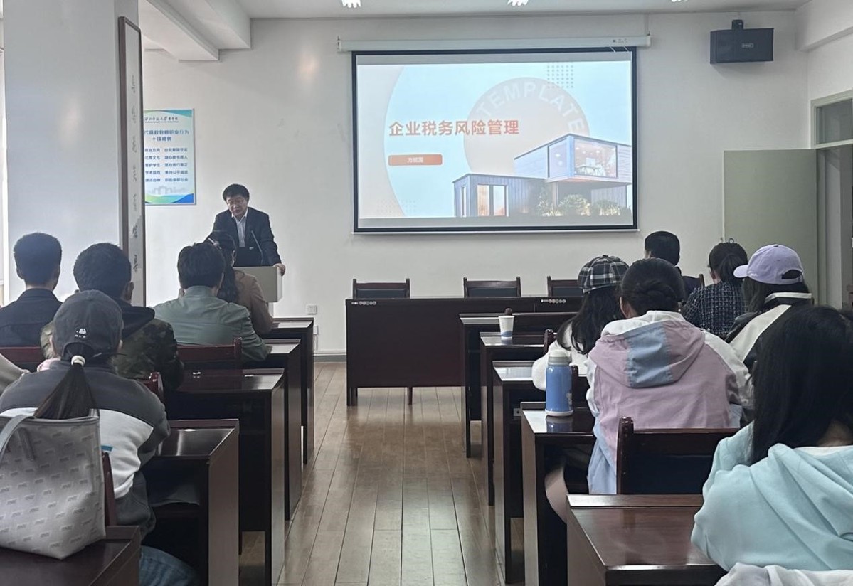 20231027日,应韦德体育官方网站商公司邀请,甘肃方正税务师事务所方斌国所长为公司师生作题为《企业税务风险管理》的学术报告。报告由MPAcc中心主任张烜主持,公司领导、专任教师及研究生共80余人参加了讲座。此次报告是研究生学术活动月系列活动之一。