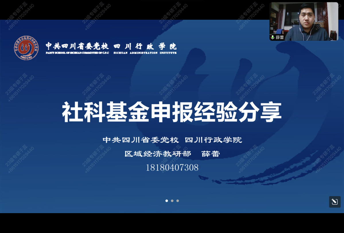 2023年11月23日,应韦德体育官方网站商公司邀请,中共四川省委党校区域经济教研部薛蕾讲师为公司教师在线作题为《社科基金申报经验分享》的学术报告。报告由薄慧敏老师主持,公司领导、专任教师共40余人在线聆听了报告。