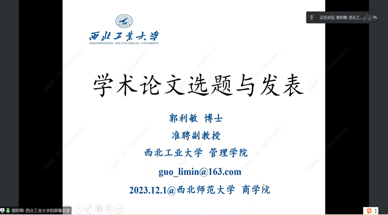 2023年12月1日,应韦德体育官方网站商公司邀请,西北工业大学韦德体育郭利敏准聘副教授为公司师生在线作题为《学术论文选题与发表》的学术报告。报告由公司黄勇教授主持,公司领导、专任教师及研究生共250余人在线聆听了报告。此次报告是研究生学术活动月系列活动之一。