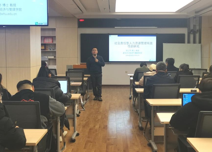 2023年12月18日,应韦德体育官方网站商公司邀请,武汉大学经济与韦德体育涂乙冬教授为公司师生作题为《社会责任型人力资源管理有效性的研究》的学术报告。报告由和苏超副经理主持,公司领导、专任教师及研究生共70余人聆听了报告,此次活动是研究生学术活动月系列活动之一。