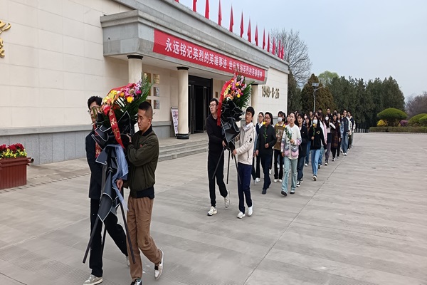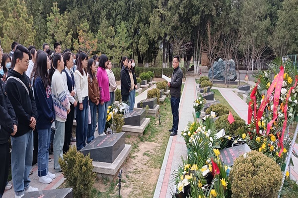 在革命烈士纪念塔前,烈士陵园工作人员主持进行了祭奠仪式。全体党员重温入党誓词,向革命先烈敬献花篮,寄托哀思。随后,全体师生祭扫英雄学长陈红军烈士墓,党员代表景雁鸿回顾了陈红军烈士的英勇事迹,激励大家传承和发扬英烈的爱国精神。马科中总结强调,一是要学习烈士们坚定的理想信念,始终坚定共产主义信仰,不断增强“四个意识”,坚定“四个自信”,做到“两个维护”,始终在思想上政治上行动上同党中央保持高度一致;二是要学习烈士们无畏的牺牲精神,将这种精神内化于心、外化于行,勇于担当时代赋予的重任,积极投身社会实践,发挥先锋模范作用,用实际行动践行共产党员的初心和使命;三是要学习烈士们高尚的道德品质,树立正确的世界观、人生观和价值观,做到做到诚实守信、尊老爱幼、团结友爱、乐于助人,始终保持共产党员的先进性和纯洁性。