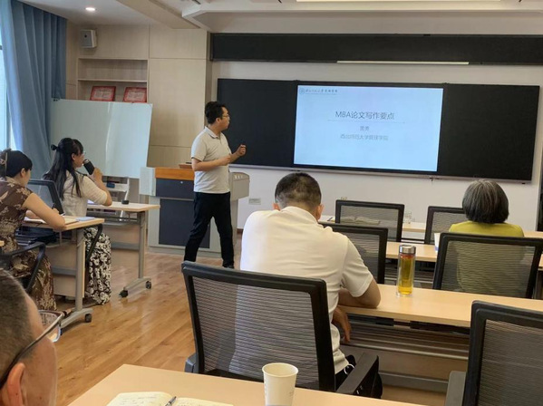 MBA教育项目主任黄勇老师,向导师们分享了参加首期全国MBA论文导师研修班的收获和感想。他从MBA论文写作的基本原则、选题要求、专业型论文结构、评价重点等方面进行了详细阐述,强调了确定真实明确的研究问题、适配专业领域的研究主体、合理选择研究方法等关键步骤。并详细讲解了绪论、文献综述、理论基础与研究方法、解决方案、实施保障等各部分内容的写作重点与注意事项,为导师们提供了宝贵的参考。随后,和苏超副经理分享了自己参加研修班的体会,进一步强调了研究生论文质量的重要性,并呼吁全体导师重视和加强研究生论文指导、提升论文指导质量,高质量的论文不仅能够提升公司的学术声誉,还能为公司学位点的建设添砖加瓦。