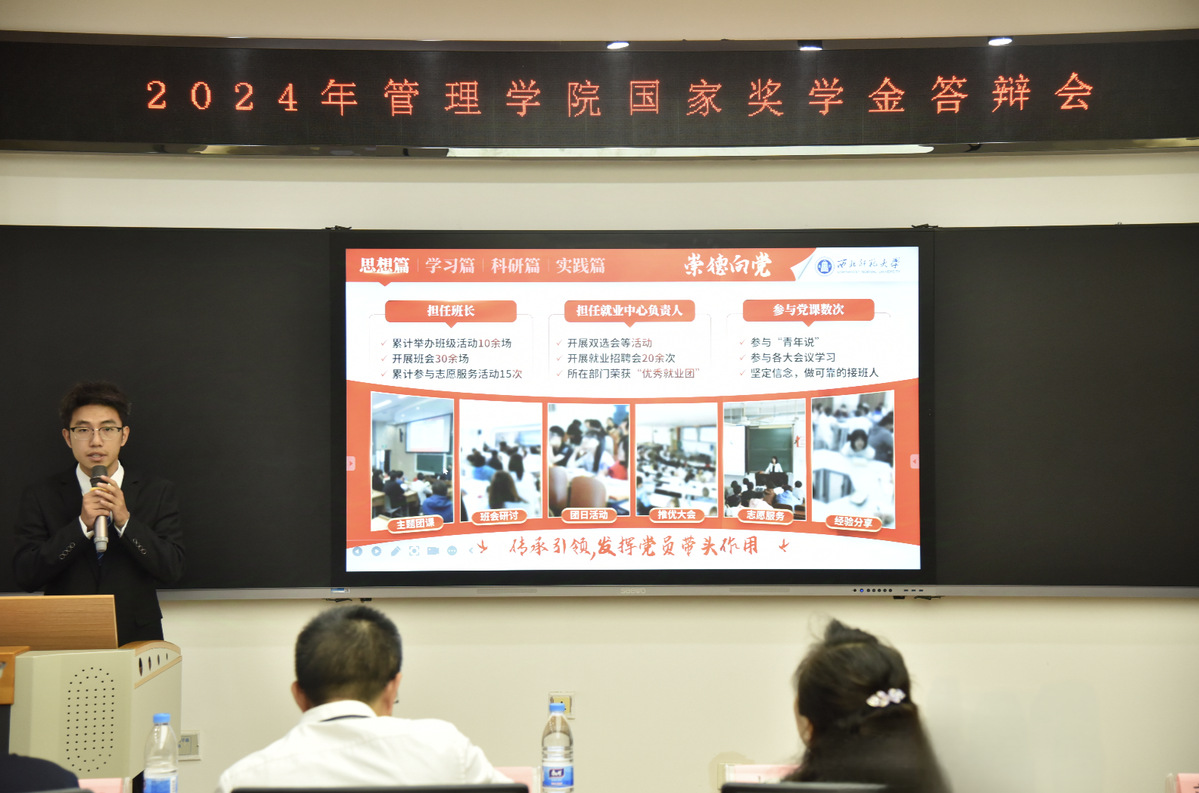 为切实做好国家奖学金评审工作,充分发挥国家奖学金的引领作用,促进学风建设。9月24日,公司举办了2023-2024学年国家奖学金答辩会,通过资格审核的7位候选人参加了答辩,70余名本科生现场观摩。公司教师洪德山、杨丽、徐卫周、薄慧敏,员工代表徐琳馥宇担任评委。此次答辩会由辅导员县旭帆主持。