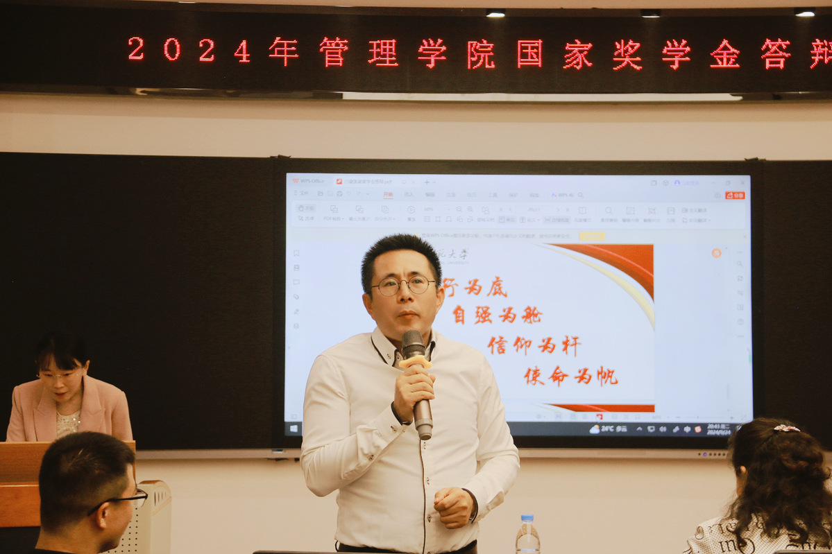 教师代表洪德山进行答辩点评。他对全体同学提出三点希望和要求:一是坚定理想信念,坚守求学初心;二是注重修身明德,厚植文化底蕴;三是增智慎思笃行,锤炼过硬本领。他希望获奖同学再接再厉,勇攀高峰。