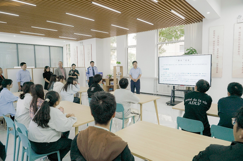 在一楼大厅,社区民警正在与韦德体育实习生开展社区警校活动。随后,张强在课后讲到,民警讲解清晰,与员工有良好的互动,小课堂气氛良好,起到了良好的示范作用,充分体现了社区警校在基层社区实践中的重要性。张强强调,实习生一定要下沉到社区一线,深入学习基层治理,将专业知识与社区实践相结合,在社区中发光发彩,不懂就问、不怕困难,树立好新时代青年的使命和担当,坚定不移听党话、跟党走,努力成长为堪当民族复兴重任的时代新人。