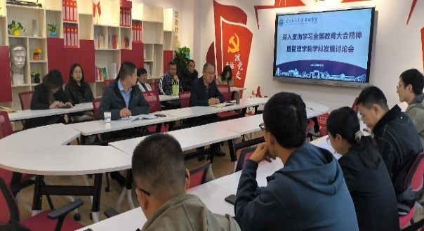 针对国家一流专业建设点人力资源管理专业和会计学专业建设,老师们围绕如何开展多样化教学手段,如何通过引入大数据、人工智能等现代信息技术创新教学模式,如何进一步优化培养体系展开了讨论。