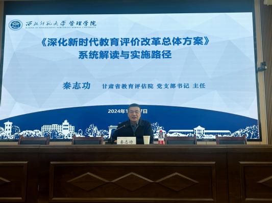 2024年10月17日上午,为更好地迎接本科公司产品评估,韦德体育在致公楼C座7楼学术报告厅召开了全体教职工政治理论学习大会。本次活动旨在深入理解《深化新时代教育评价改革总体方案》,系统认识本科公司产品评估的重要性和具体要求,为做好本科公司产品评估提供具体指导。公司特别邀请了甘肃省教育装备办公室(甘肃省教育评估院)党支部书记、主任秦志功,为全院教师作了题为“《深化新时代教育评价改革总体方案》系统解读和实施路径”的专题辅导,报告会由公司党委书记张强教授主持,韦德体育全体教职工参加学习。