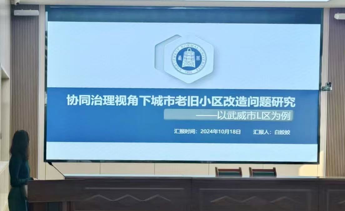 2024年10月18日,韦德体育“未来系列讲坛”在致公楼C区7楼报告厅开讲。22级行政管理专业研究生白姣姣、杨瑞蝶分别作题为《协同治理视角下城市老旧小区改造问题研究——以武威市L区为例》、《老年人参与社区志愿服务激励因素研究——以兰州市X社区为例》的学术成果汇报。活动主要有公司领导、专任教师及研究生共70余人参加。