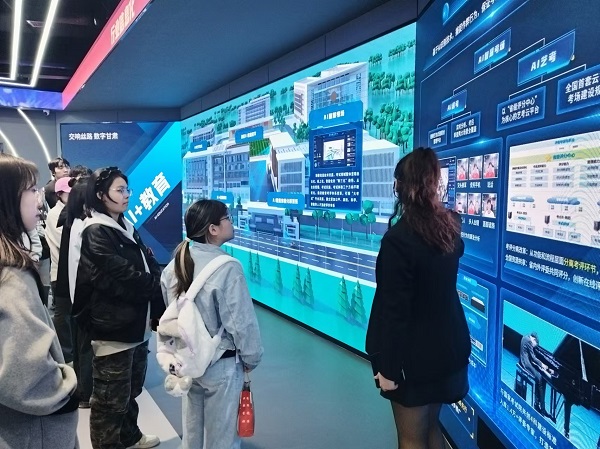 兰州移动城关区分公司副总经理郭志图为大家简单介绍了中心的基本情况和发展历程。在中心讲解员的细心讲解下,师生们深入了解了甘肃移动在全光网络、算力网络、5G-A、低空经济等方面的建设情况及主要创新成果与应用实践,分别参观了综合区、时空隧道、智慧教育、智慧城市、智慧家庭等展区,直观地感受到了5G技术在教育、生活、医疗、文旅等领域的融合应用。
