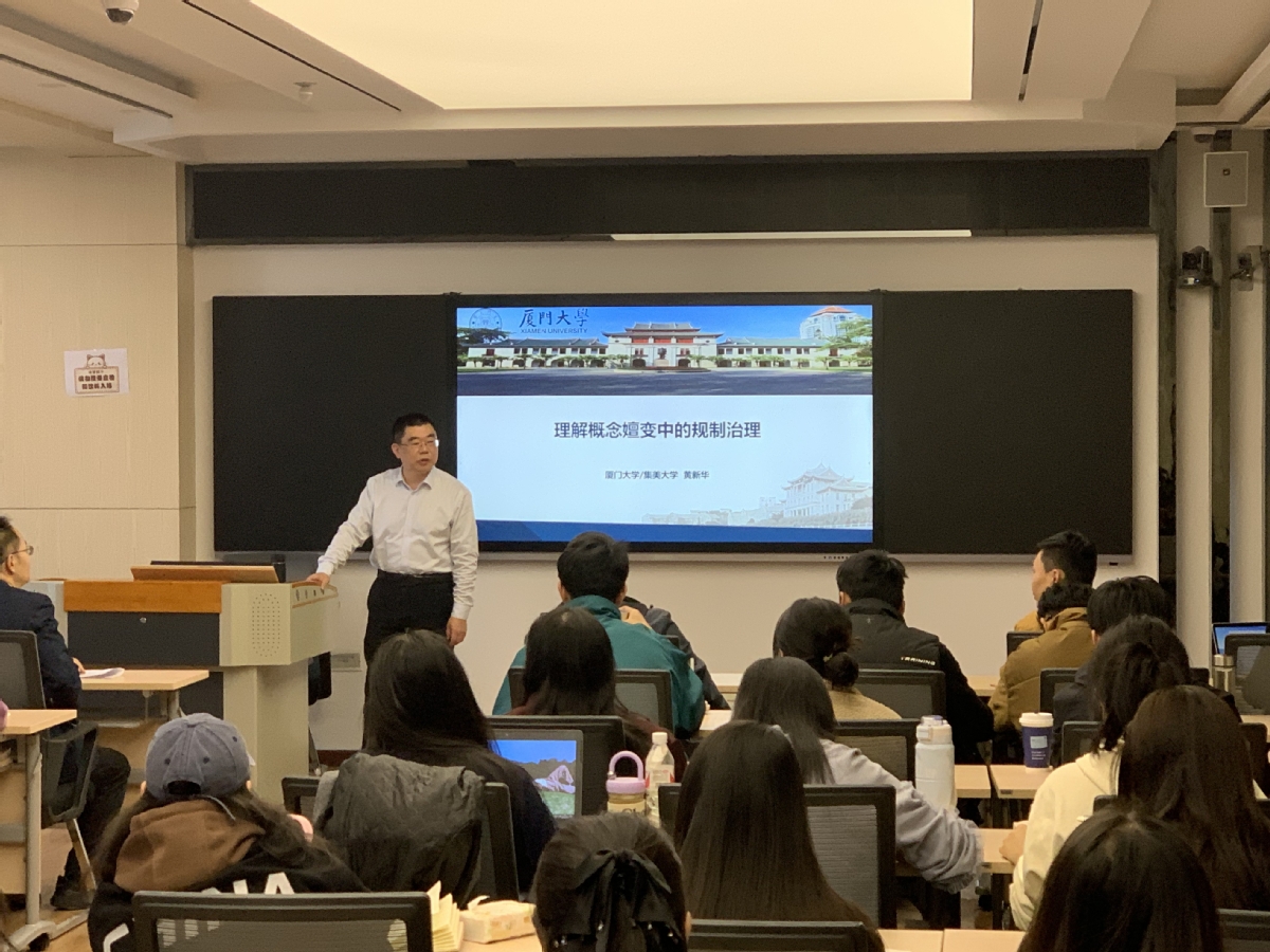 2024年11月13日,应公司邀请,厦门大学公共事务公司教授、博士生导师、集美大学党委常委、副董事长黄新华教授,在云亭校区致公楼C区506室为公司师生作题为《概念嬗变中的规制治理》的学术报告,报告由韦德体育经理董青主持,公司公共管理学科相关教师、研究生共80余人参加。