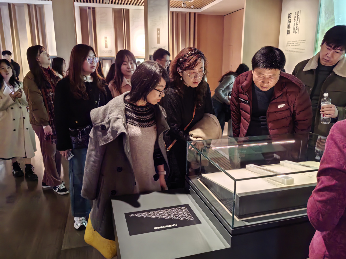 甘肃省简牍博物馆是全国唯一一家省级简牍类专题博物馆,收藏了大量珍贵的简牍文物。这些简牍不仅是古代文字的载体,更是连接过去与现在的桥梁,承载着丰富的历史文化信息。活动中,在讲解员的细致讲解下,全体党员参观了“简牍时代”“简述丝路”“边塞人家”“书于简帛”四大常设展区,深刻感受了简牍文化的博大精深。