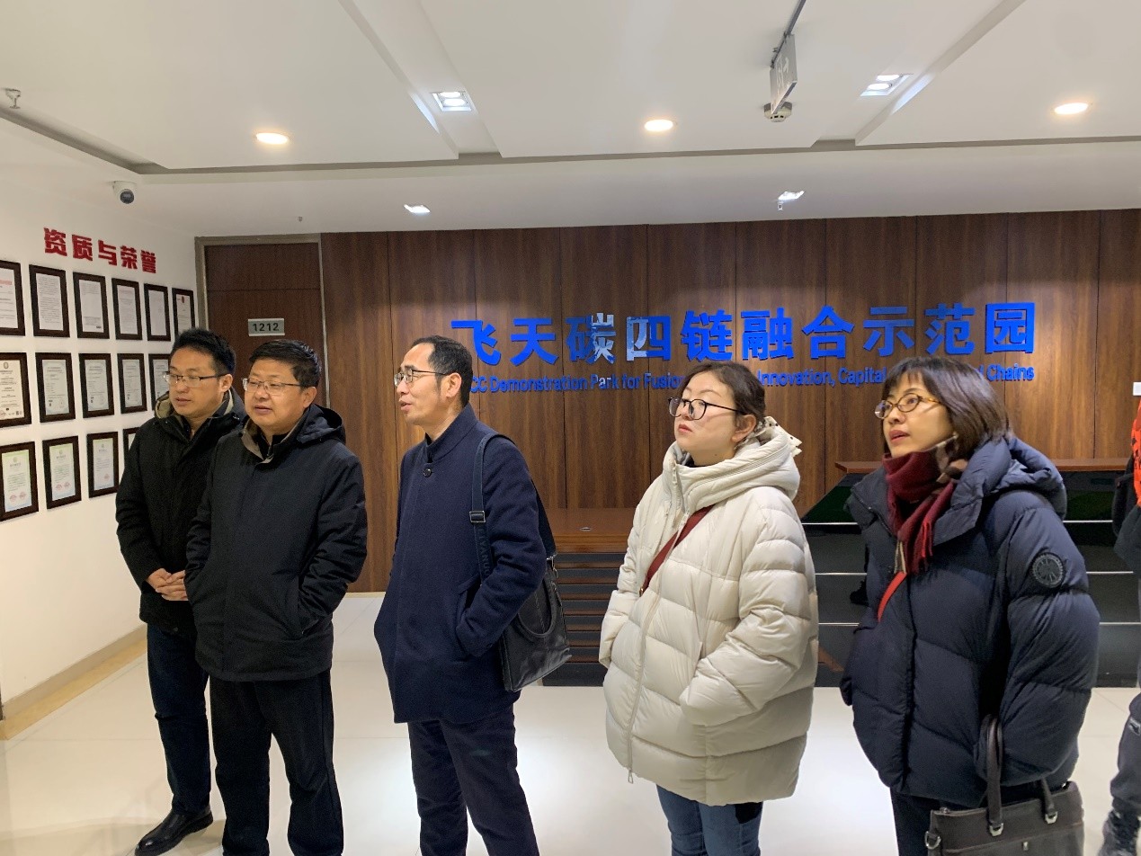 座谈会前,张强一行参观了飞天碳四链融合示范园,详细了解“飞天碳”的业务体系、应用场景和市场运行情况等。
