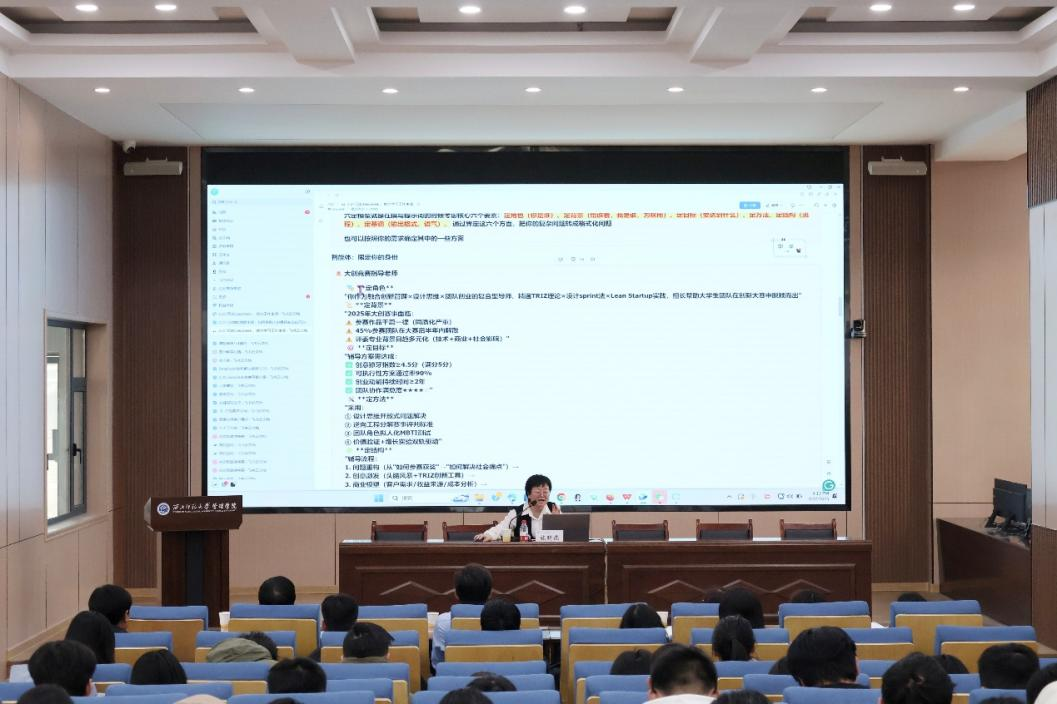 张晓燕老师以“AI助力公司产品:路径与技巧”为主题,结合自身丰富的学术研究成果与教学实践经验,全面阐述了AI技术在公司产品各个环节的重要作用,以及运用AI助力教学的有效路径和实用技巧,为师生们在教学和学习方法创新方面开辟了新的视野与思路。