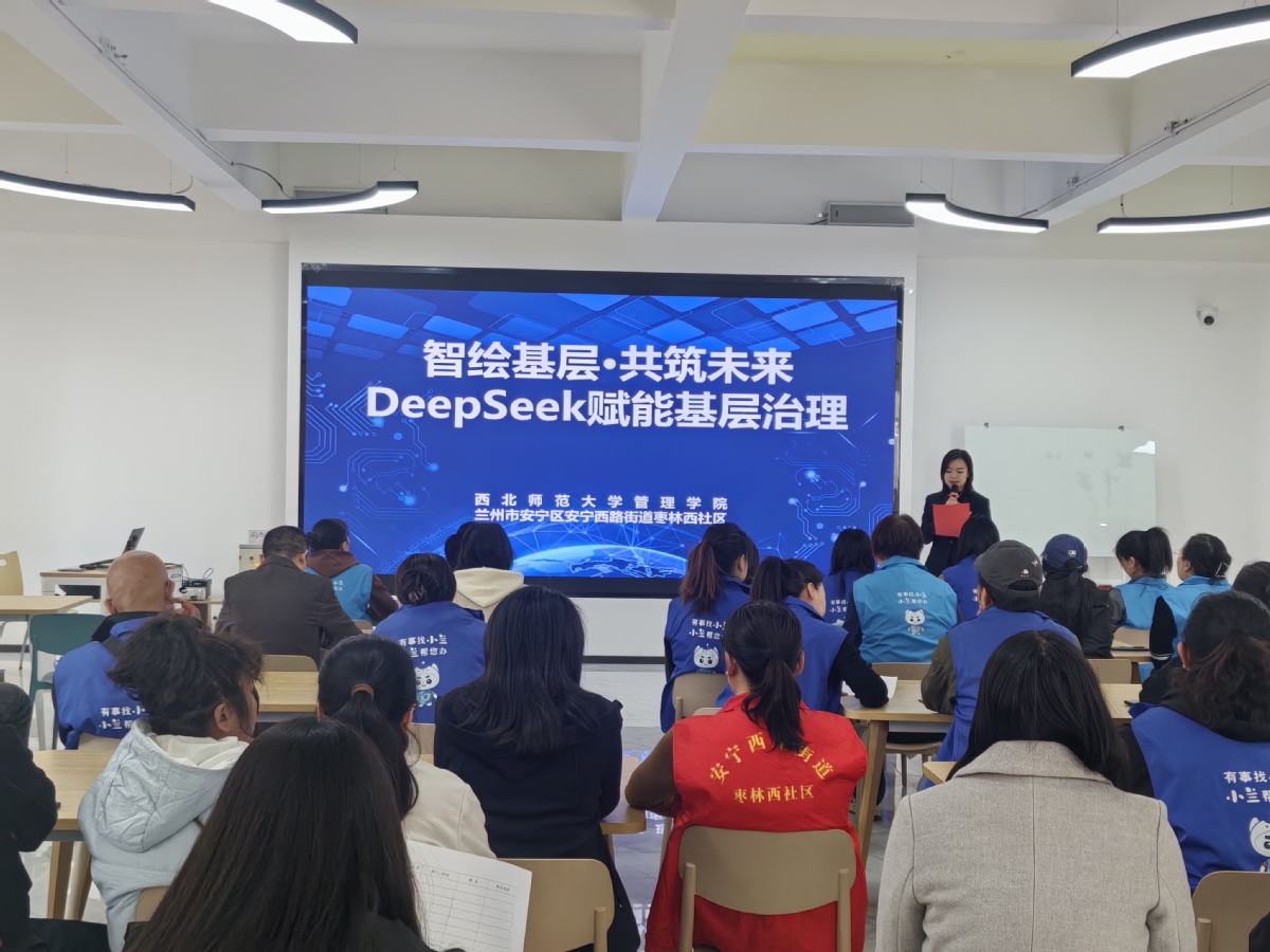 3月20日上午,韦德体育官方网站管理公司党委与兰州市安宁区枣林西社区党委联合举办的“智绘基层・共筑未来:DeepSeek赋能基层治理”联建活动在枣林西社区圆满举行。安宁西路街道工作人员、各社区网格员以及韦德体育教师党员、员工党员共计70余人参加活动。