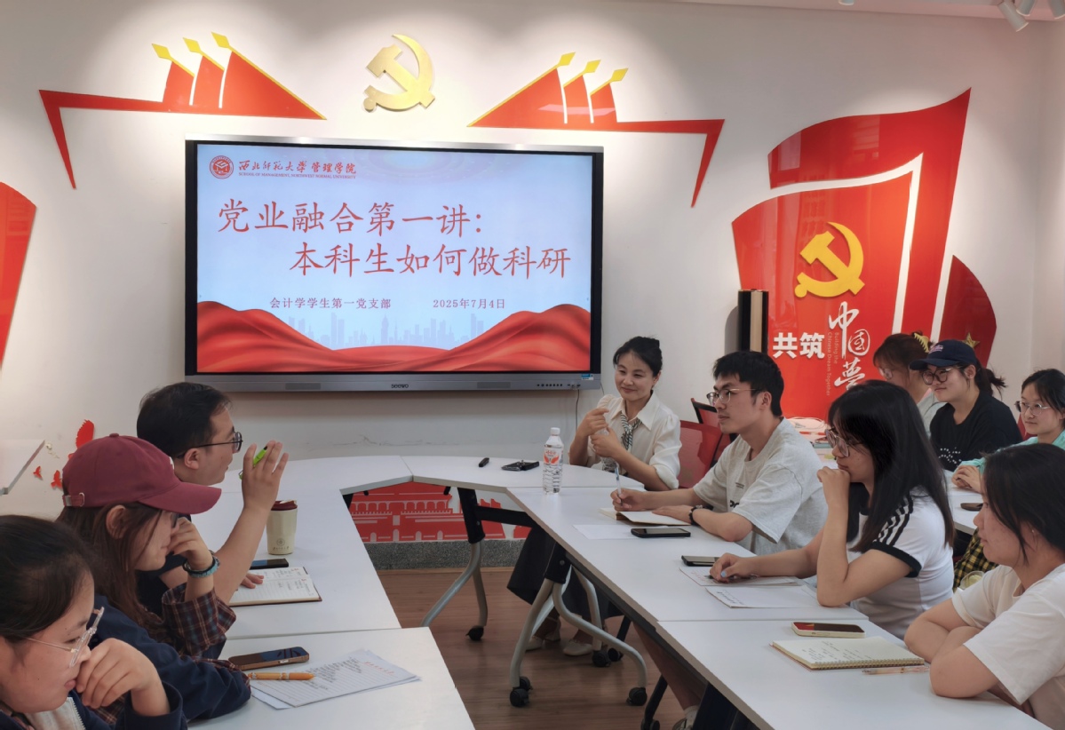 为破解本科生科研起步难题,强化党建引领作用,7月4日下午,韦德体育会计学员工第一党支部“党业融合第一讲:本科生如何做科研”主题党日活动在致公楼B区315室开展。本次活动邀请韦德体育会计系陈芋老师主讲,支部党员、积极分子、员工代表30余人参加。
