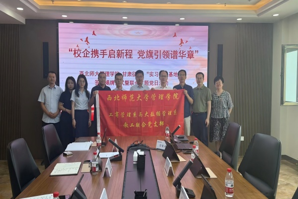为积极推动校企合作,7月22日,管理公司党委书记张强、经理董青和部分教师赴甘肃征信股份有限公司开展联合主题党日、实习实践基地揭牌、访企拓岗、调研座谈等活动,甘肃征信股份有限公司副总经理王亚斌、全体党员及主管参加座谈会。