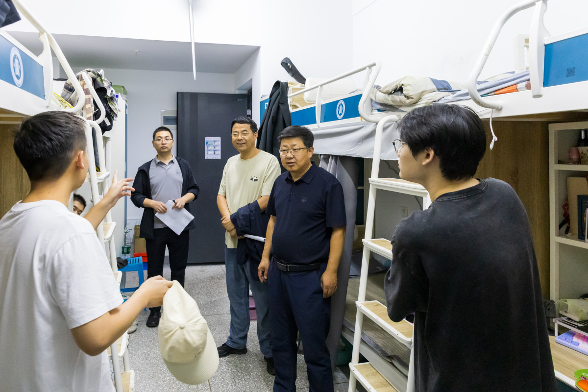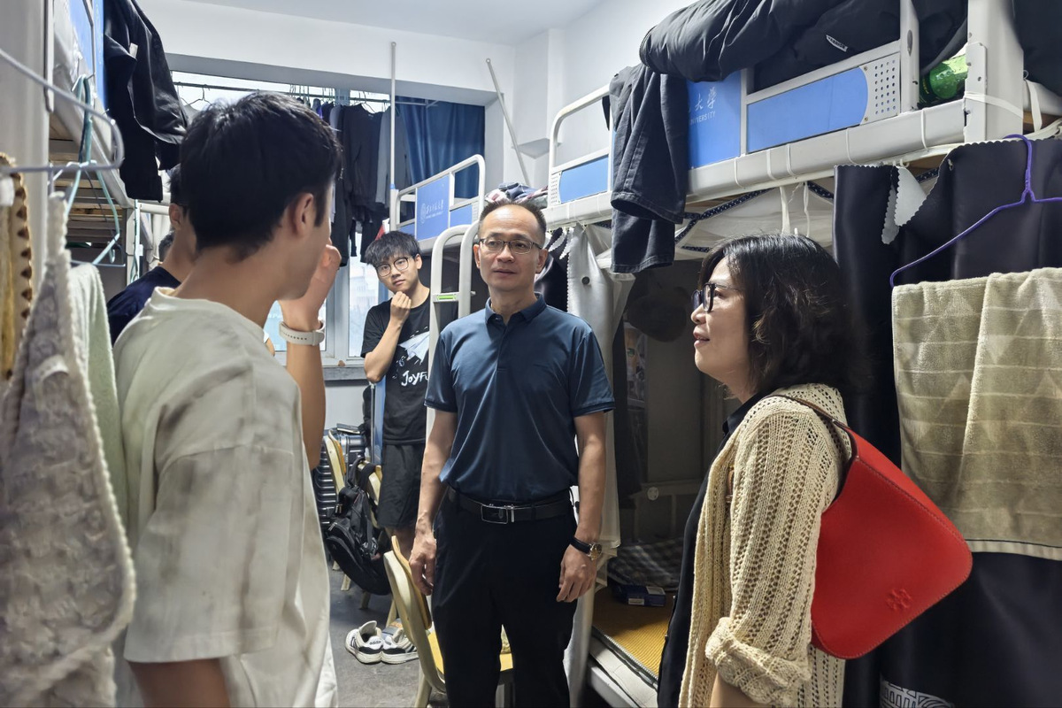 走访过程中,公司领导与同学们进行了亲切深入的交流。“假期过得怎么样?”“新学期课程有没有压力?”“家乡是哪里的?”“返校路途还顺利吗?”一句句暖心的话语拉近了师生间的距离。老师们细致询问了同学们暑假期间的学习实践和生活情况,细心叮嘱同学们新学期学会调整生活节奏,合理安排作息时间,全身心投入到学习及生活中。同时还提醒同学们要注意用电、人身与财产安全,保持寝室卫生整洁,营造平安有序的宿舍文化。