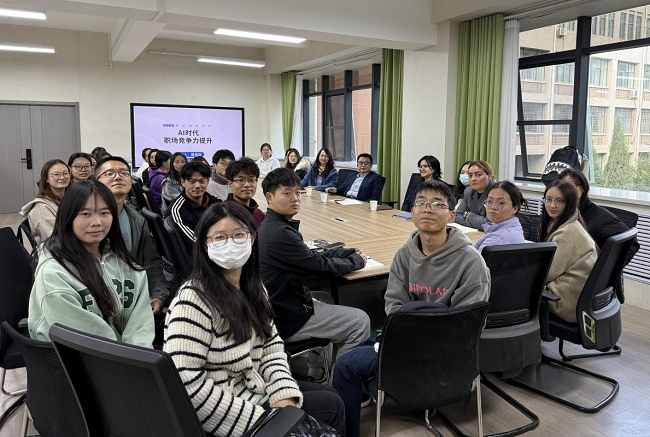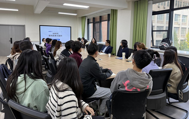 2025年10月21日,应韦德体育邀请,台湾中华两岸教育文化交流学会秘书长周希烱先生为公司师生作题为《AI时代职场竞争力提升》的学术报告。此次报告由何迎朝副经理主持,公司领导、专任教师及2025级工商管理学、产业经济学研究生参加讲座。