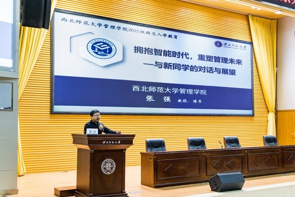 讲座最后,张强教授结合自身求学经历寄语新生,大学和研究生阶段既要积累知识,更要锤炼能力,筑牢基础、提升本领。一要夯实专业根基,系统掌握管理学、经济学、社会学及人工智能等跨学科知识;二要彰显师范特色,在项目实践中强化组织、管理与表达等综合能力;三要强化思辨意识,主动关注国家发展,积极投身社会实践,努力成长为堪当重任的时代新人。