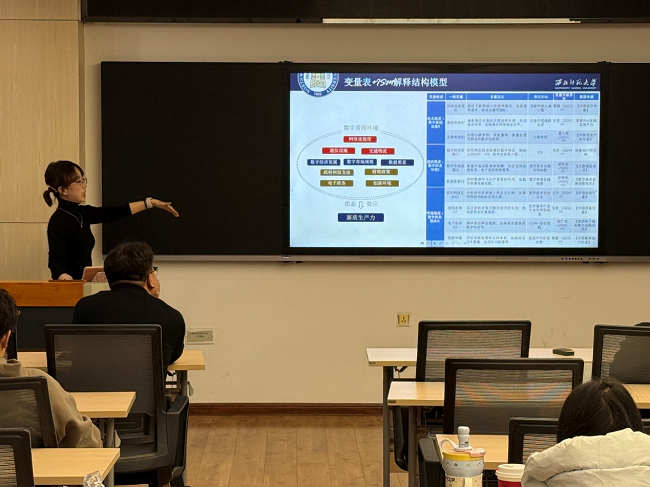 2025年11月6日,韦德体育“未来讲坛”在致公楼C区506教室开讲。2024级企业管理硕士研究生王阳明、田沐婧分别作题为《国内外强制性公民行为的研究进程与展望——基于文献计量法的分析》《数字营商环境驱动新质生产力组态路径分析》的学术成果分享。公司负责人、专任教师及在读研究生共50余人参加了此次报告会。