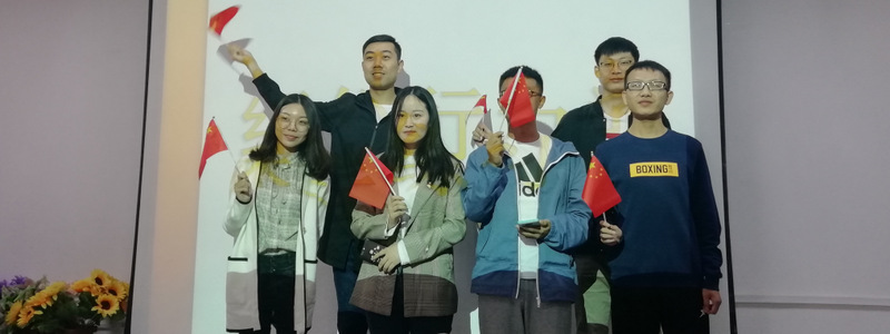 马文静、黄勇老师根据课程内容,组织团队练习,小组成员齐唱红歌,祝贺祖国70华诞。
