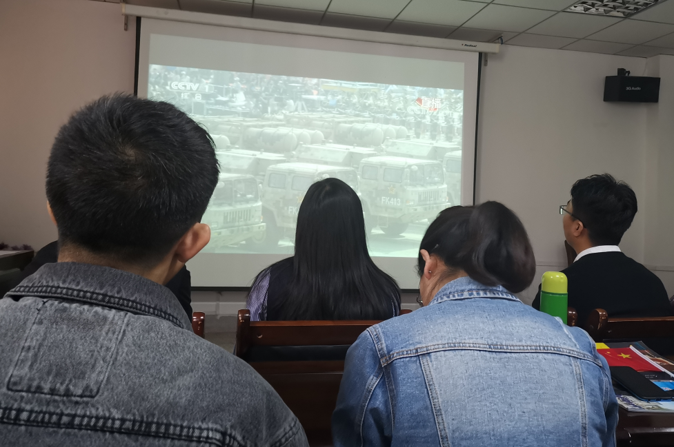 101日上午,庆祝中华人民共和国成立70周年大会在北京天安门广场隆重举行,商公司部分教师2019MBA学员10号楼C217会议收看庆祝大会现场直播盛况。